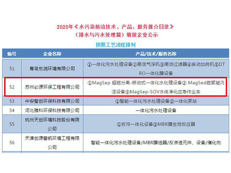必源設(shè)備成功入選2020年《水污染防治裝備技術(shù)、產(chǎn)品、服務(wù)推介目錄》