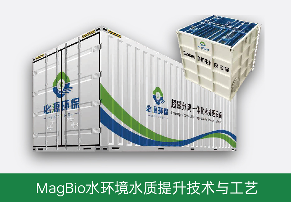 另外,我司的MagBio水環(huán)境水質(zhì)提升技術(shù)與工藝,是MagSep超磁分離水體凈化工藝+Biotank多相生物反應箱工藝的串聯(lián)組合工藝,兼具了磁分離水處理技術(shù)與生化技術(shù)的雙重優(yōu)勢,可同時完成對TP、SSCOD、NH,-N、部分TN的高效去除,出水可達到地表IV類水水質(zhì)標準,實現(xiàn)綜合水環(huán)境水質(zhì)提升的目標。