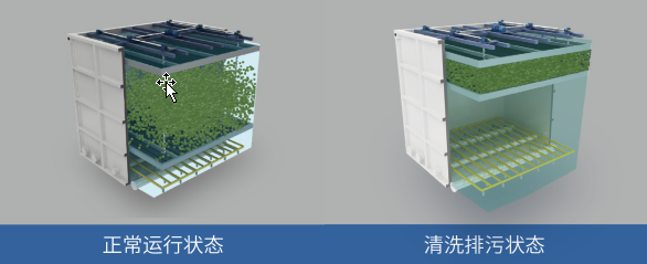 立體填料孔隙率高有彈性,彈性擠壓排泥,無(wú)需二沉池,有效好氧容積大。