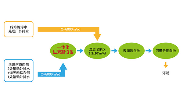 此次萬平口瀉湖水質凈化工程中,必源環保榮幸地參與了磁絮凝預處理環節,提供了本公司自主研發生產的MagSed一體化磁絮凝設備。